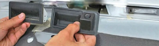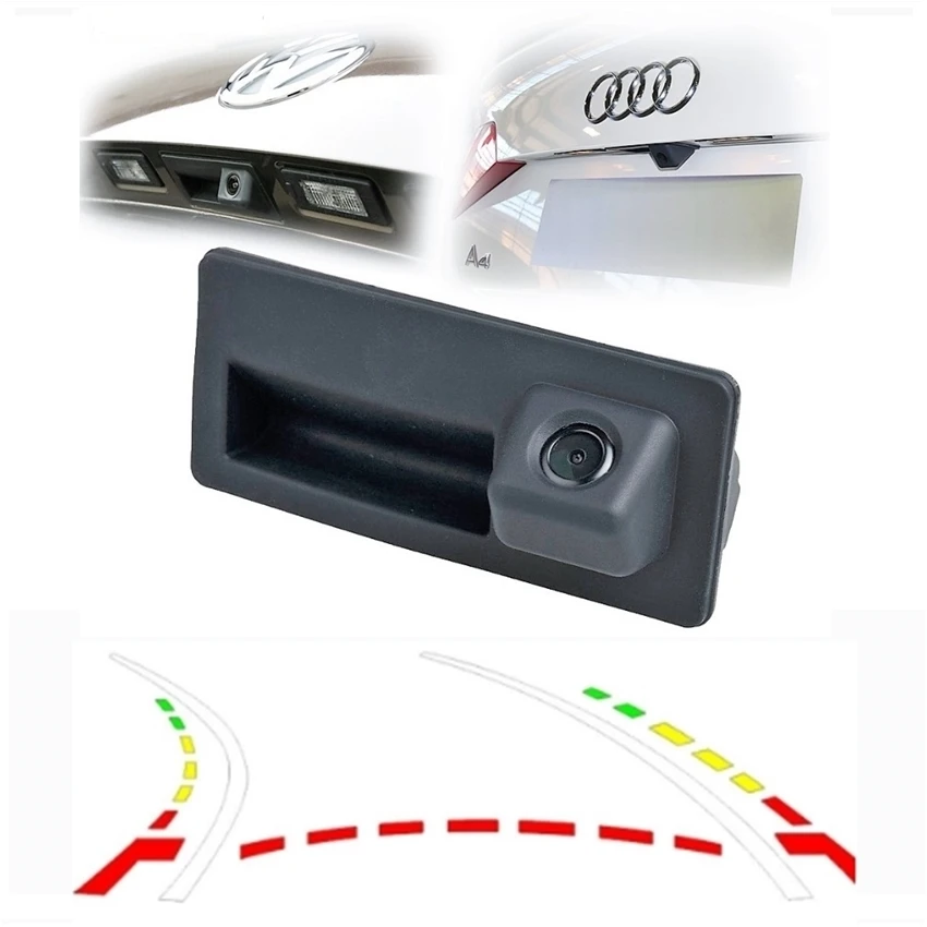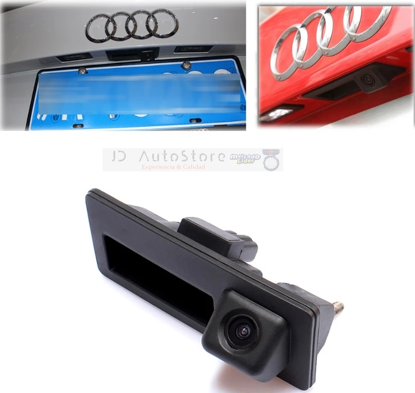 Cámara de reversa especifica tipo original con la nueva tecnologia LINEAS DE PARQUEO DINÁMICAS, para vehículos AUDI no adaptación no perforación de bumper, directamente para reemplazar la manija de apertura del baúl, no pierde la función de apertura eléctrica.
