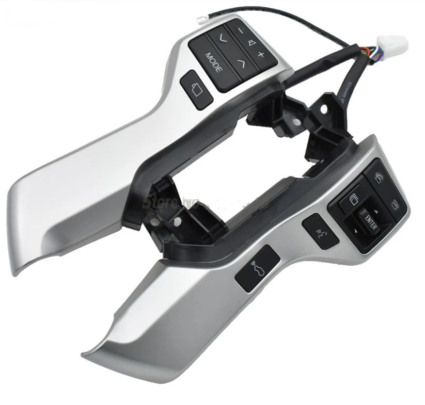 Controles para el timón de su camioneta TOYOTA PRADO TX, TX.L 2010/2017, teniendo en cuenta que estas camionetas son de alta GAMA no vienen equipadas con estos controles tan importantes, que no es un lujo sí no accesorio de seguridad ya que le permite mantener la vista en la vía mientras opera el radio sin necesidad de estar pendiente que emisora cambia o contesta alguna llamada telefónica.