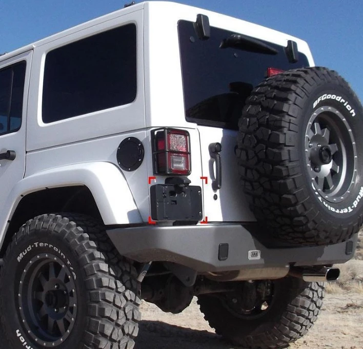 Soporte porta placa lateral para JEEP WRANGLER JK, le da un estilo USA y al cambiar la placa del sitio original le permite instalar tiro de arrastre sin bloquear la visión de la placa y así evitar un comparendo.