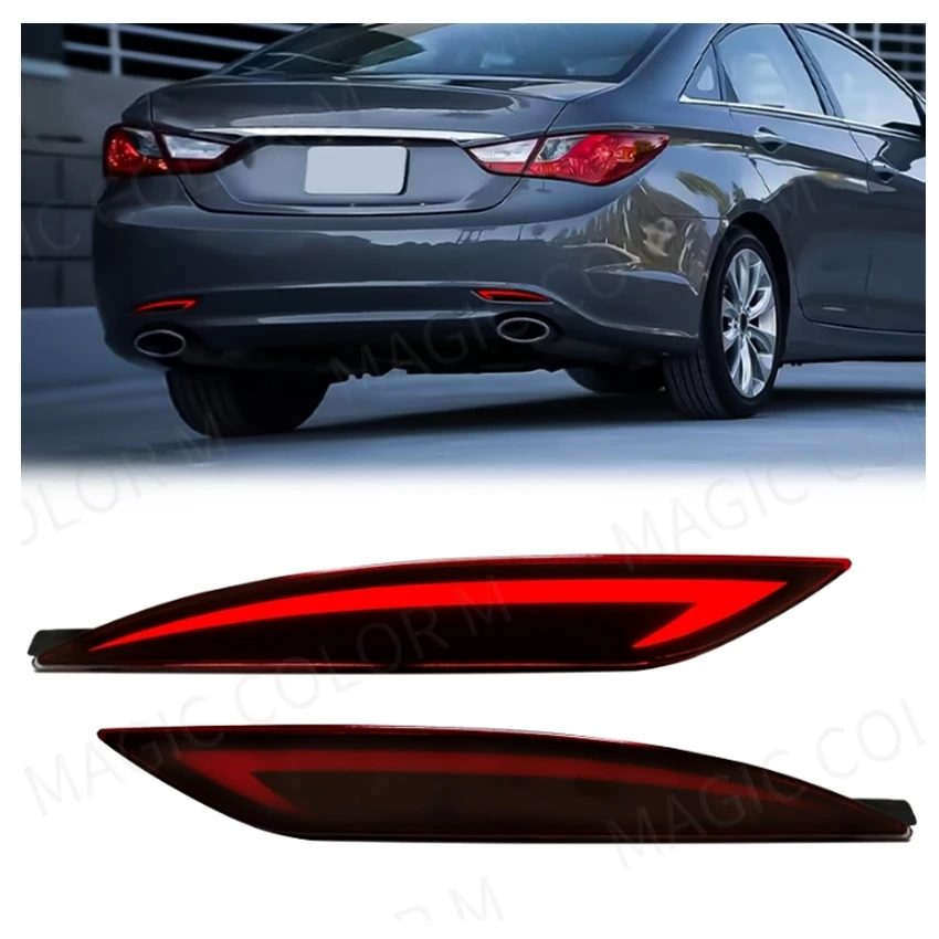 Luces LED de estilo óptico 3D modernas y perfectas con señal de giro fluidas, que mejoran la apariencia general del vehículo y al mismo tiempo sirven como un logotipo de seguridad reflectante trasero. Este par de luces LED para parachoques trasero reemplazará perfectamente la lente tragaluz reflectante original de su HYUNDAI SONATA, brindando a su vehículo una iluminación suave y uniforme, hermosas curvas de flujo, ajuste preciso y reemplazo directo. Equipado con modelos de luz trasera/de freno, mejora la seguridad en la calle.