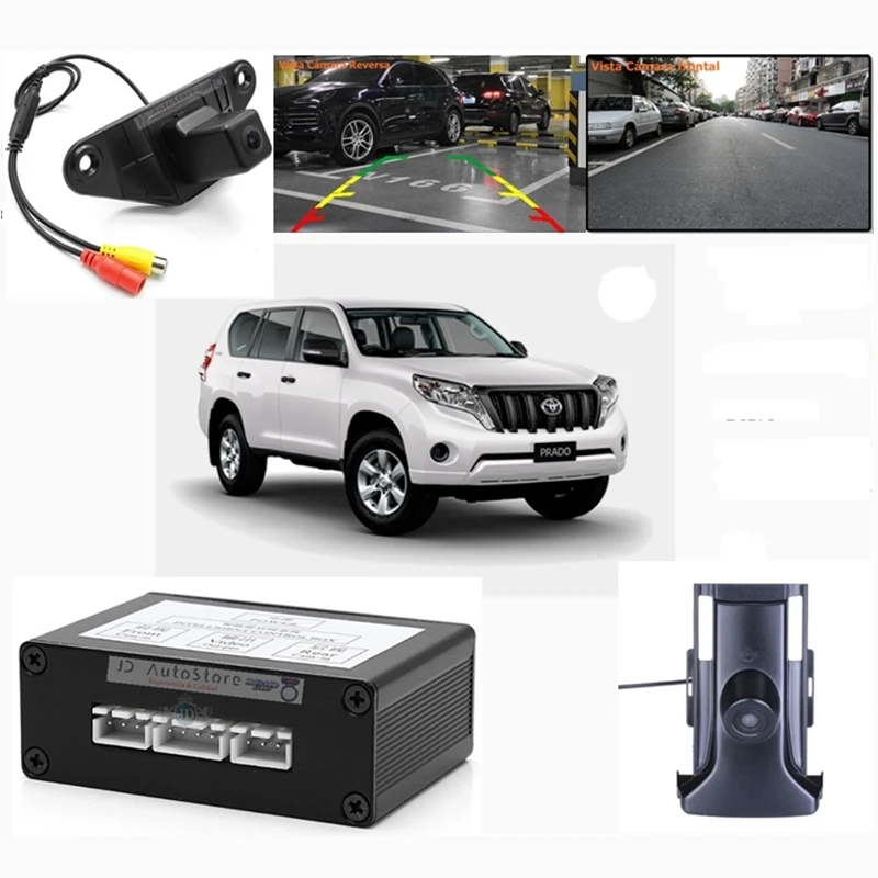Sistema de parqueo para Toyota Fortuner que consiste en un modulo inteligente + cámara de reversa y cámara frontal, este modulo le permite conectar las dos cámaras (reversa y frontal) a su Toyota, y de forma automática le va a mostrar en el monitor, pantalla o sistemas de entretenimiento con pantalla y entradas de vídeo RCA las imagenes de cada cámara.