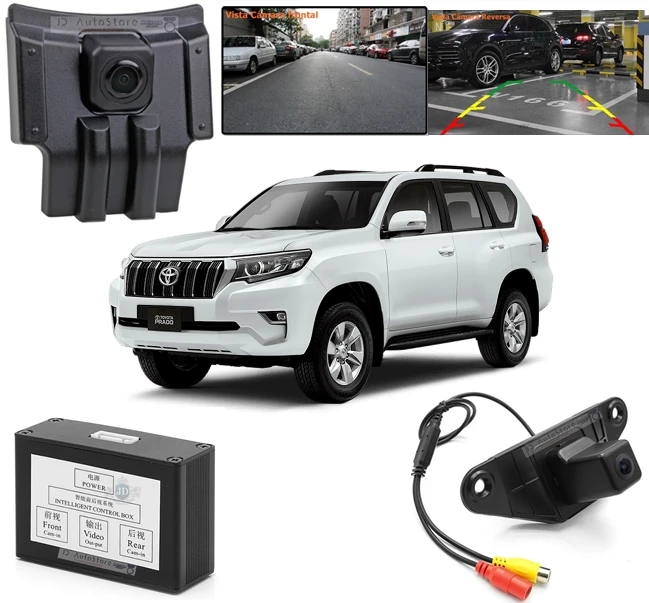 Sistema de parqueo para Toyota Fortuner que consiste en un modulo inteligente + cámara de reversa y cámara frontal, este modulo le permite conectar las dos cámaras (reversa y frontal) a su Toyota, y de forma automática le va a mostrar en el monitor, pantalla o sistemas de entretenimiento con pantalla y entradas de vídeo RCA las imagenes de cada cámara.