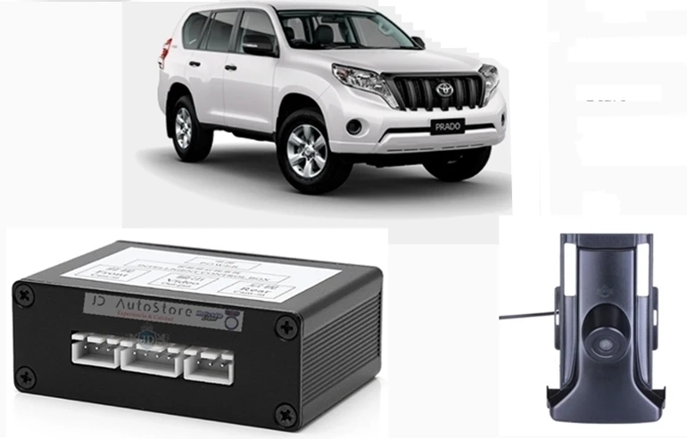 Sistema de parqueo con cámara frontal tipo original para integrar con la cámara de reversa de su Toyota Prado tx, tx.l que consiste en un modulo inteligente + cámara frontal, este modulo le permite conectar las dos cámaras (reversa y frontal) a su Toyota, y de forma automática le va a mostrar en el monitor, pantalla o sistemas de entretenimiento con pantalla y entradas de vídeo RCA las imágenes de cada cámara.